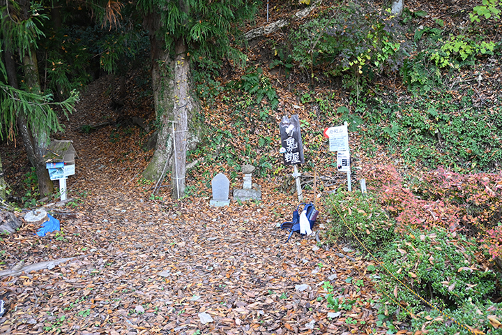なんか家の庭先みたいな所に出ましたが、公式に指導標も出てるし合ってるっぽい。