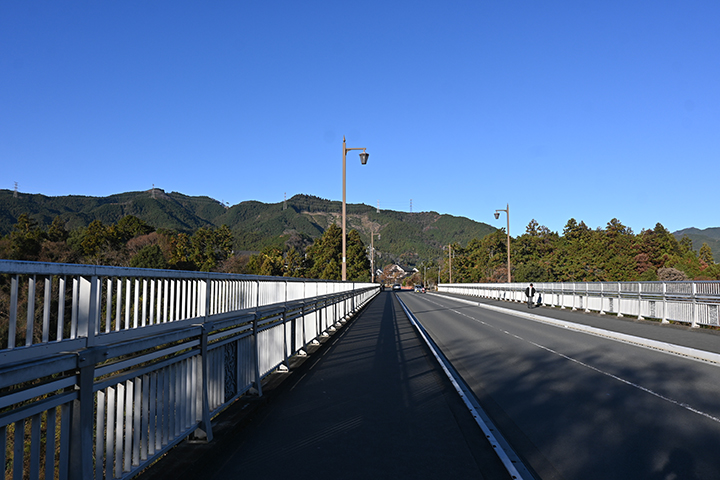 今回登る山は橋の向こうに見える程度の山並み。