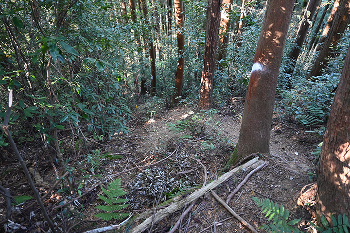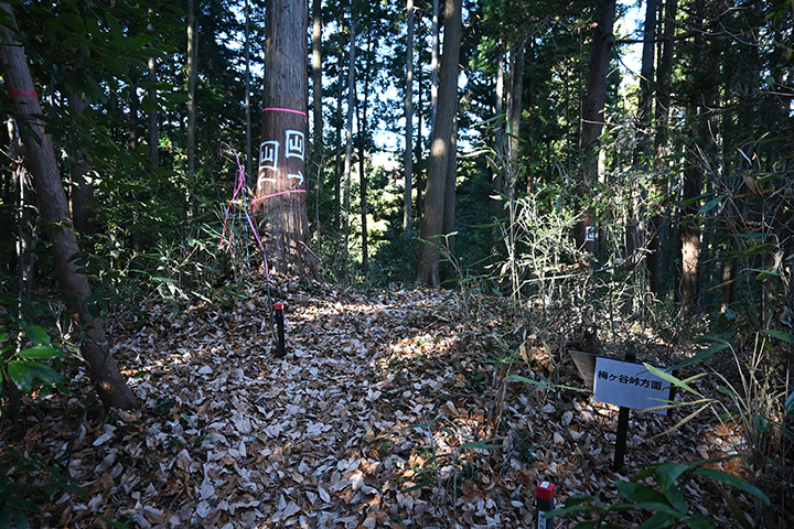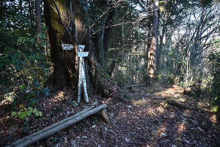 指導標が梅ヶ谷峠の案内を出しているので、メインルートはこっちと何も考えずに左に行くと、なんか凄い下り坂が続く。