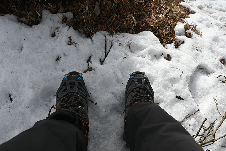 稜線近くをチェーンスパイク使用しただけで外しました。