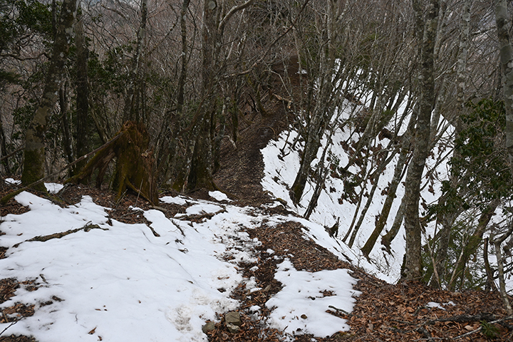 稜線は雪が残ってますが緩やかな登りなので滑り止めはなくても普通に歩けます。