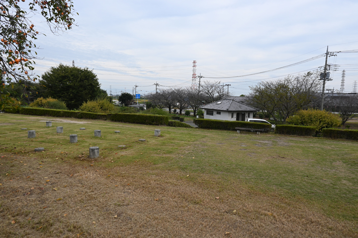 手前にある支柱が倉庫の柱があった場所を示しているそうです。
