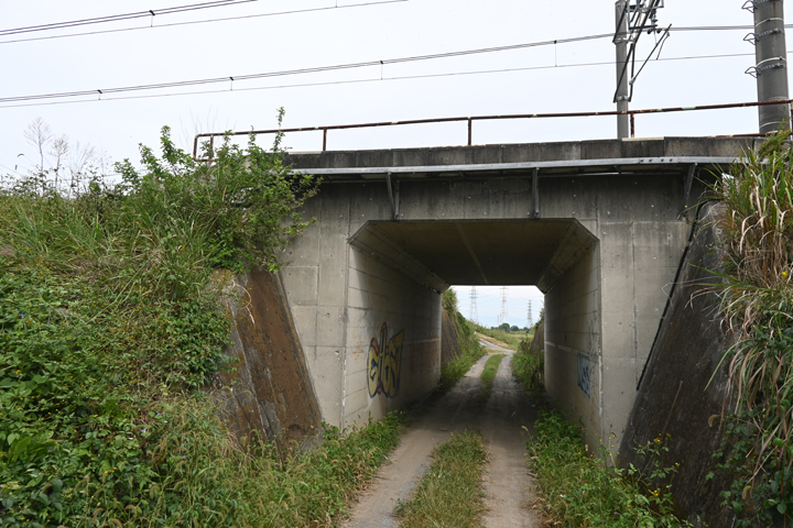 畑の中の農業道を歩いた先に川と線路に突き当たるものの、地図はなくて線路下を通れるようになってました。